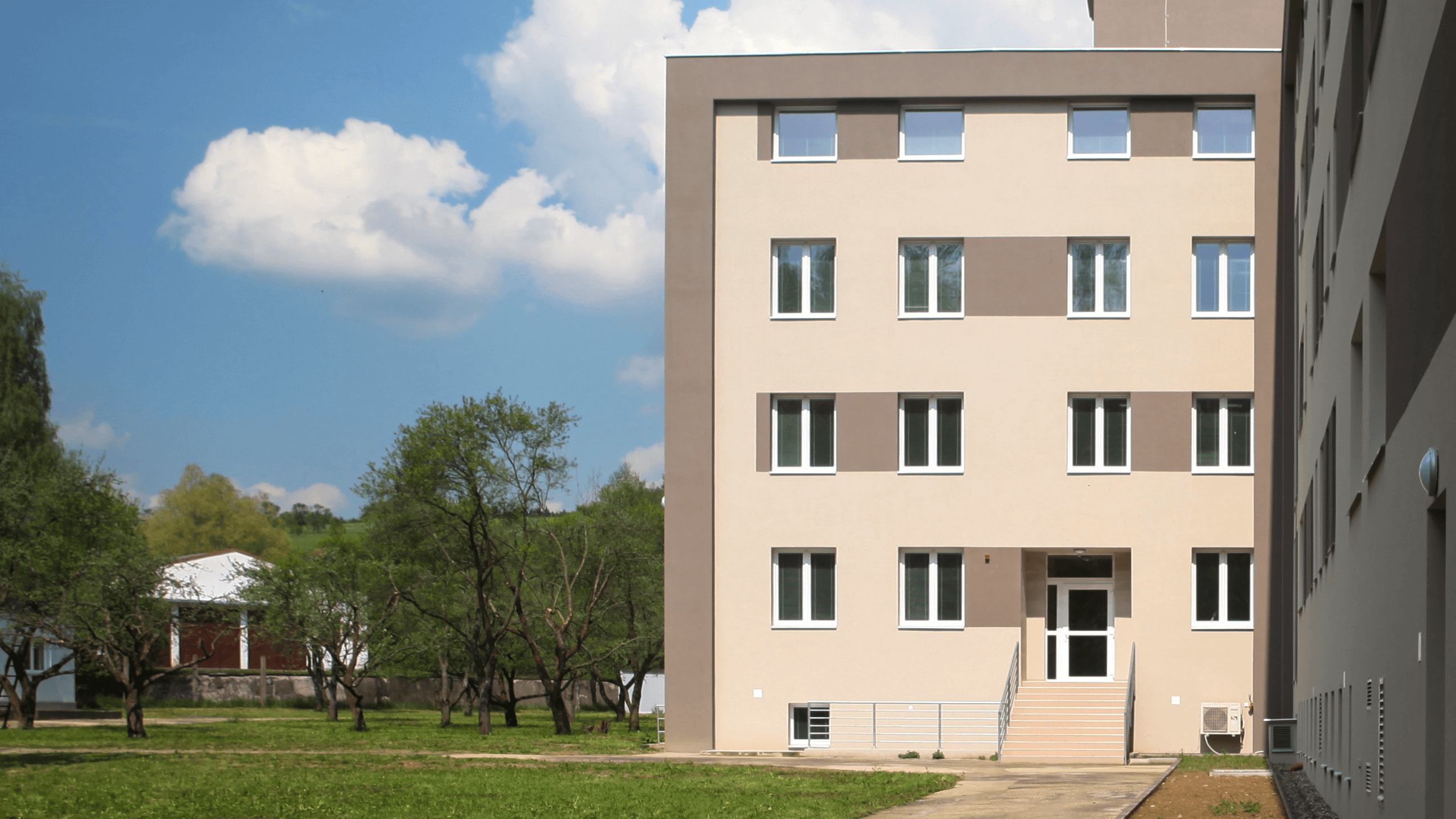 Sanatorium se nachází v okrajové části Holic, obklopené rozsáhlou zahradou, která slouží k relaxaci i terapeutickým aktivitám. Při návrhu jsme dbali na propojení budovy s přírodou a příjemné prostředí pro klienty.